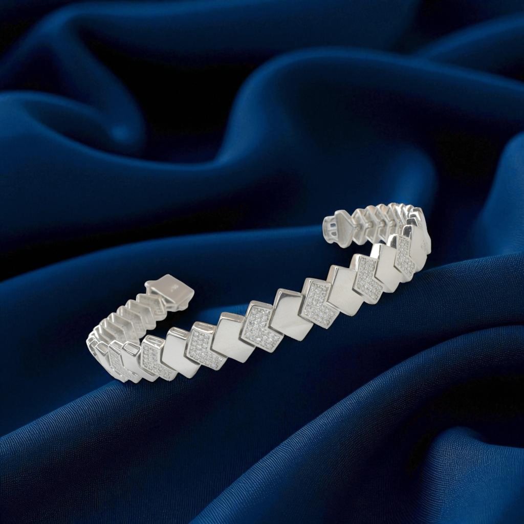 - ELEGANT DESIGN: Features a sophisticated chevron pattern with alternating polished and crystal-studded segments for a striking visual appeal