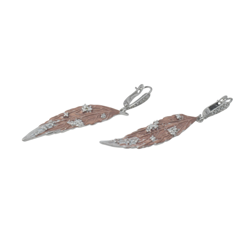 - PREMIUM MATERIAL: Crafted from genuine 92.5 Sterling Silver, featuring an exquisite two-tone feather design with rose gold plating and crystal embellishments