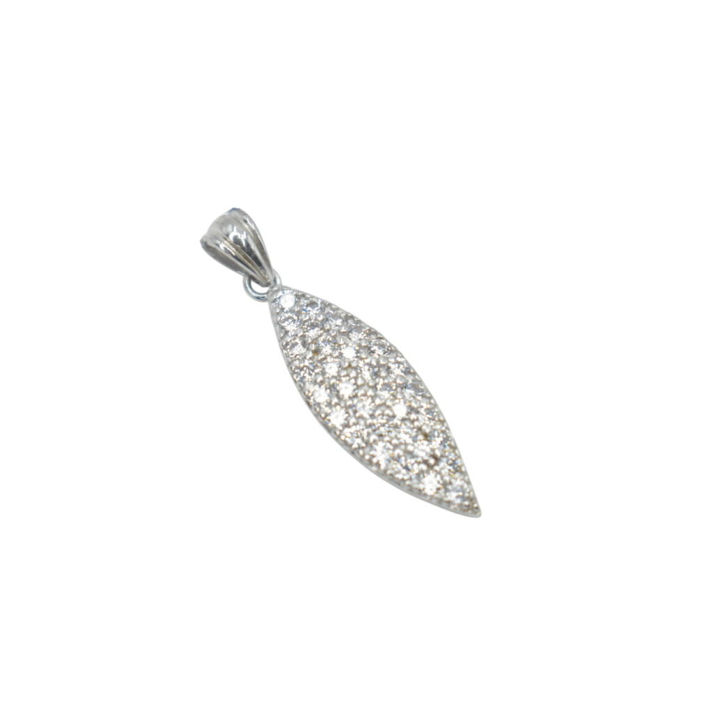 • ELEGANT DESIGN: Beautiful leaf-shaped pendant adorned with sparkling cubic zirconia stones in a pave setting, Classy dollar-shaped pendant designed for women – simple yet stylish