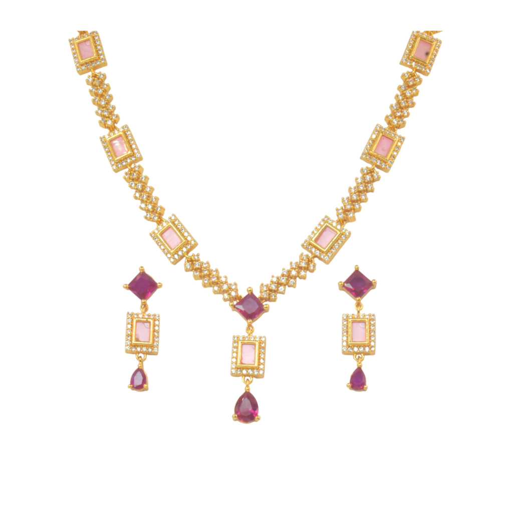 PINK STONE NECKLACE WITH DROPS COLLLECTIONS 92.5