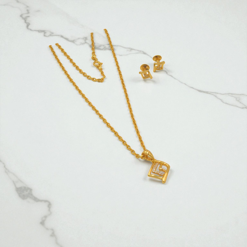 - COMPLETE SET: Includes matching earrings featuring the same geometric design motif as the pendant for a coordinated appearance