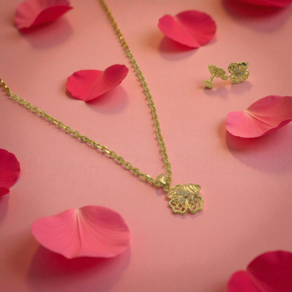 Sterling Silver 92.5 Gold-Plated Floral Necklace Set | Silver Necklace | Silver Gift Items | Attractive Trendy & Traditional Necklace Collections | Gift for Women | New Kausalya Silvers