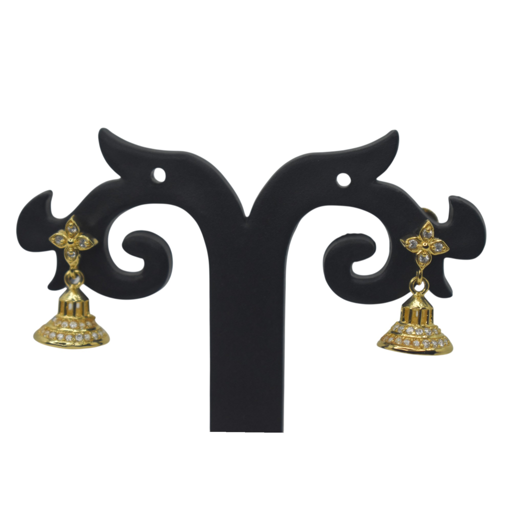 • PREMIUM DESIGN: 92.5 Sterling silver jhumka earrings featuring an elegant gold-plated finish and traditional floral motifs with sparkling crystal embellishments, Made from 92.5 sterling silver – hypoallergenic, lightweight, and anti-tarnish