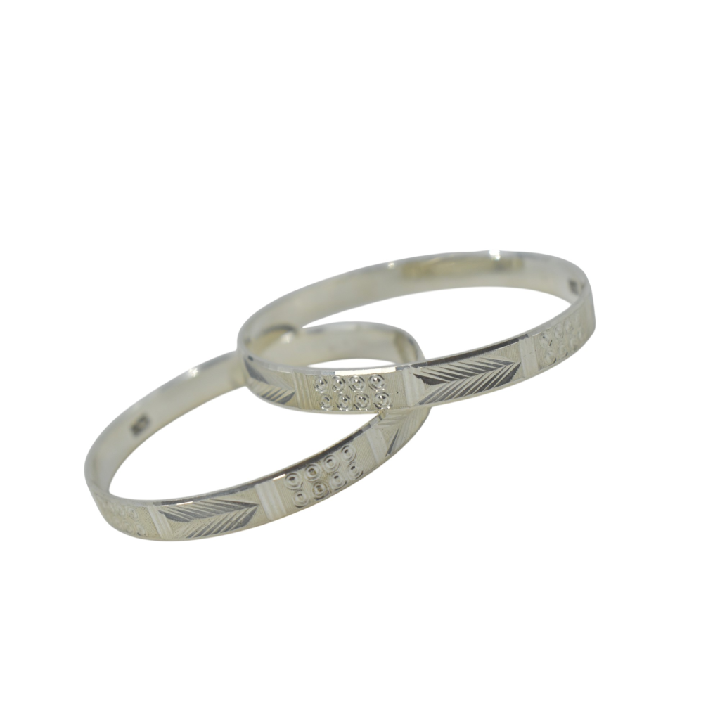 - ELEGANT DESIGN: Features intricate geometric patterns with leaf motifs and dotted textures, showcasing traditional Indian artistry, Elegant silver bangles with smooth traditional finish – perfect for daily and festive wear