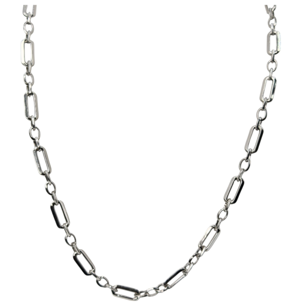 - CLASSIC DESIGN: Features an elegant chain-link pattern with rectangular links, perfect for everyday wear or special occasions, Classic men's silver chain with stylish finish – perfect for everyday wear