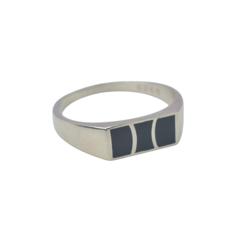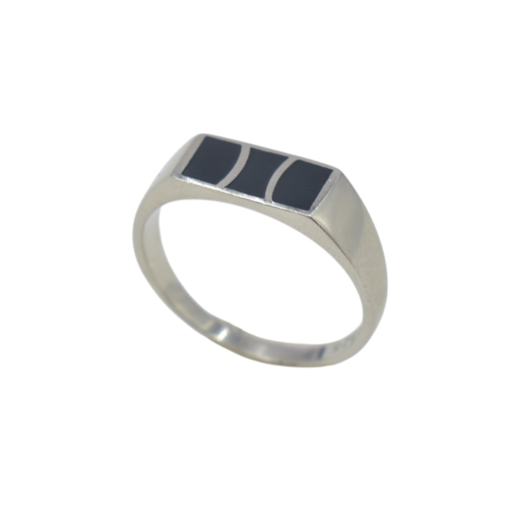 Sterling Silver Men's Ring with Black Enamel