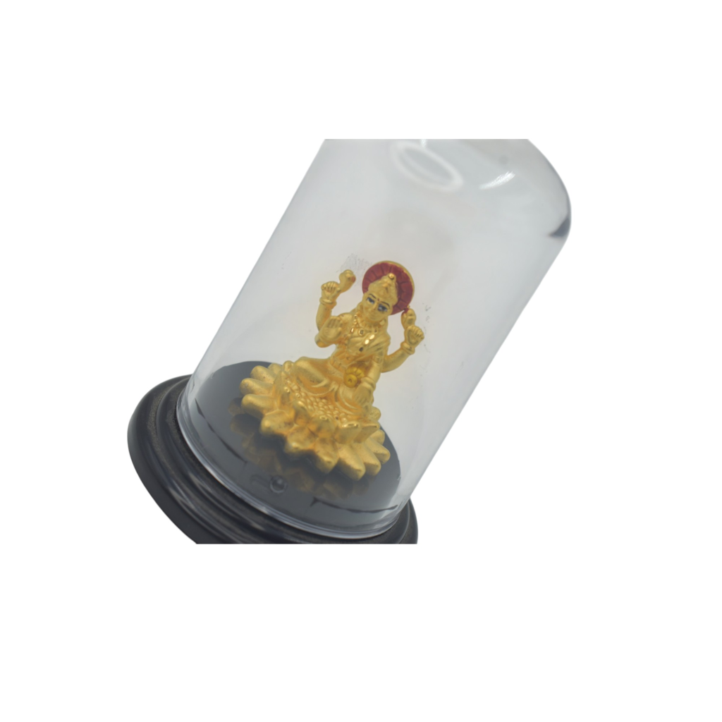 Decorative Golden Lakshmi Idol with Glass Dome Display Case